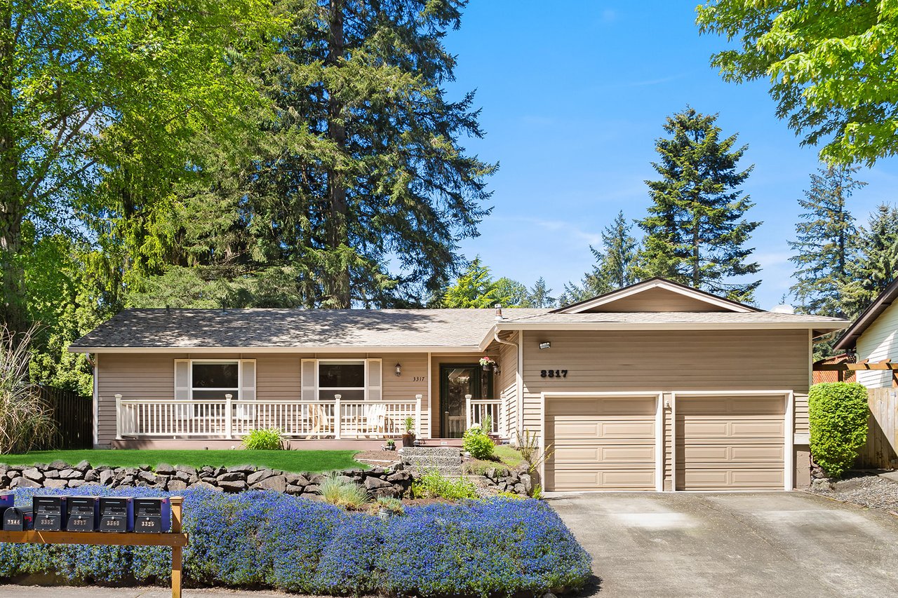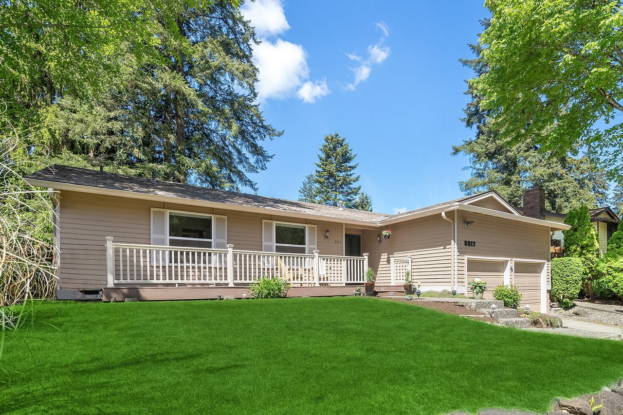 Updated rambler located just minutes from Microsoft & Marymoor Park! Enter the newly tiled entry to gleaming hardwoods and a light-filled floorplan with vaulted ceilings, skylights & new windows. Gorgeous remodeled kitchen with pecan cabinets, solid-slate countertops, gas range & stainless steel appliances. Unique touches throughout - including full guest bathroom with barrel ceiling & mosaic tile floors. The updated primary bathroom features double sinks, a glass shower enclosure, and heated floors. Old-growth trees add privacy to the West-facing/fenced backyard with deck, patio & storage sheds. Perfect for entertaining and soaking in the Summer months. Turn-key and stunning! Inspection report available.